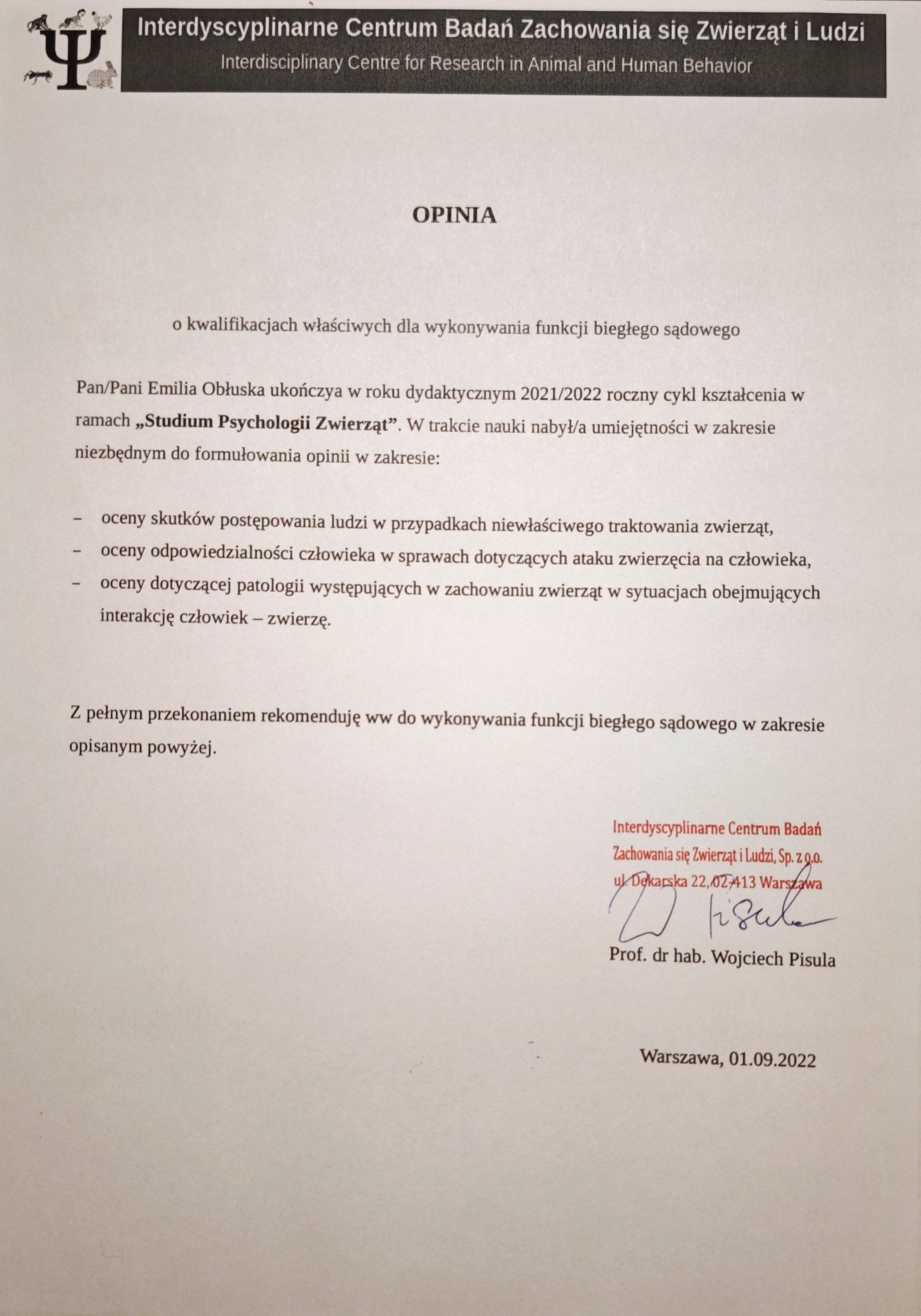 Zoopsycholożka